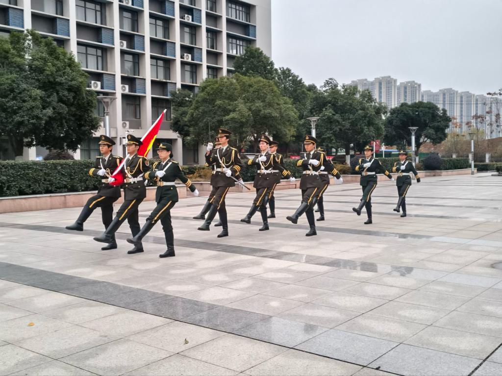 本次升旗仪式由2025级智能机电1班胡琪同学主持。激昂的乐曲声中,国旗护卫队队员们迈着铿锵有力的步伐,护送着鲜艳的五星红旗走向升旗台。他们身姿挺拔、神情肃穆,每一步都尽显青春的朝气与担当。