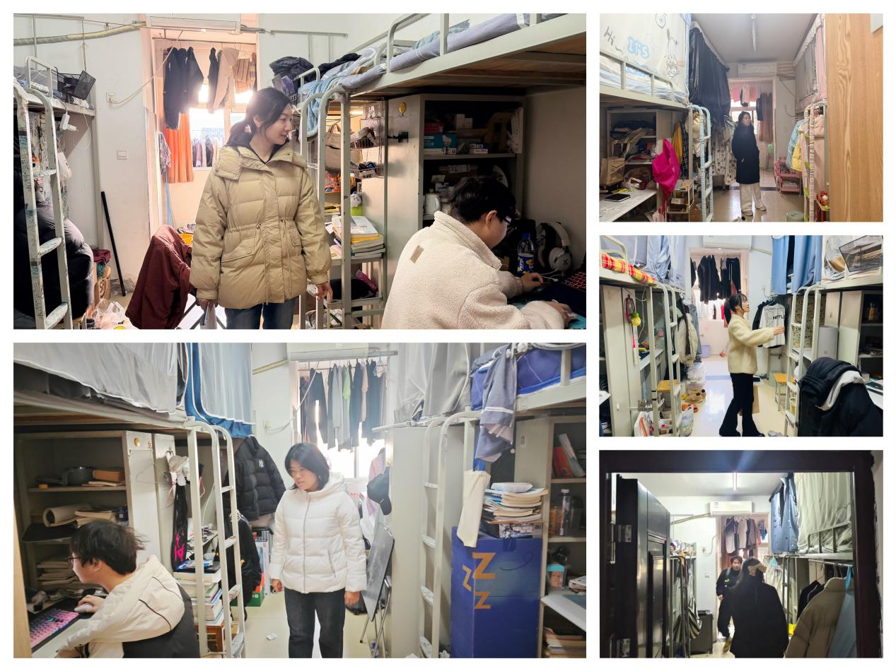 排查过程中,韩玮与辅导员们以楼栋为单位,深入学生宿舍一线,重点围绕消防安全、用电安全、卫生状况及违禁物品等关键环节开展细致检查。针对冬季天干物燥的特点,检查组特别排查了宿舍内大功率电器、私拉乱接电线、违规使用明火等消防安全隐患;仔细查看门窗锁具、消防器材配备,确保疏散通道畅通;同时关注宿舍卫生清洁、物品堆放等情况,及时提醒学生保持宿舍整洁通风,养成良好生活习惯。此外,韩玮与辅导员们还与学生亲切交谈,详细了解学生住宿需求和思想动态,通过“面对面”沟通,普及冬季安全防范知识,强调宿舍安全纪律,引导学生提高安全防范意识和自我保护能力,自觉遵守校园安全管理规定。