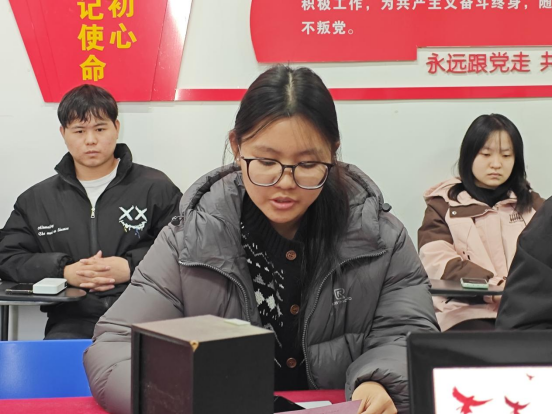 交流研讨环节,师生党员代表结合岗位实际分享学习感悟。教师党员成诺表示,将以全会精神为指引,聚焦智能制造关键技术攻关,推动科研成果与产业需求精准对接,破解“科技与经济两张皮”难题;辅导员张郝晨谈到,将把全会精神融入思政教育全过程,引导学生将个人理想融入强国建设、民族复兴伟业;学生党员伍启慧、张素玮坦言,将深耕专业知识、锤炼创新本领,以青春之力响应“科技自立自强”的时代号召。