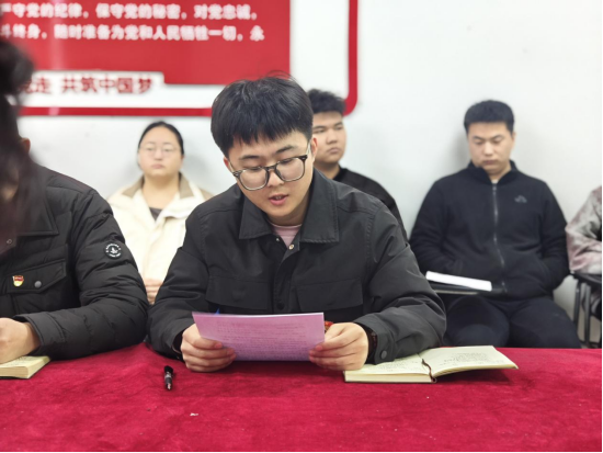 随后,学生党支部书记方腾领学《习近平:关于<中共中央关于制定国民经济和社会发展第十五个五年规划的建议>的说明》,系统阐释了“十五五”规划制定的时代背景、核心要义与实践要求。他指出,教育、科技、人才一体化发展是全会部署的重要任务,学院作为智能制造领域的育人高地,必须主动对接制造业数智化转型需求,扛起技术赋能、人才支撑的时代责任。