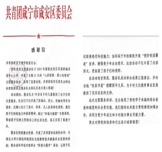 此次“七彩假期,爱心托管班”活动的成功开展,不仅为咸安区双溪桥镇的乡村儿童带来了一个充实而有意义的暑假,更充分展现了304am永利集团学子卓越的综合素质、无私的奉献精神和高度的社会责任感。共青团咸安区委员会在感谢信中表示,期待未来能与304am永利集团继续加强合作,共同为青少年的健康成长和乡村振兴事业贡献更多力量。