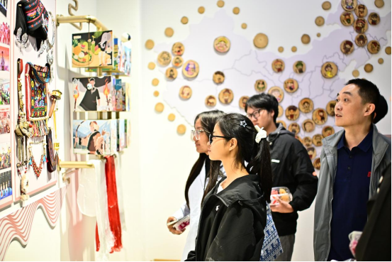 参观过程中,同学们围绕展品的工艺细节、文化内涵展开热烈讨论。“原来这件维吾尔族手工艺品的图案有这么深刻的寓意!”“壮族的银饰制作工艺太精湛了,真是令人惊叹。”大家纷纷表示,通过实地参观,不仅开阔了眼界,更深刻感受到了中华民族文化的博大精深和各民族文化的独特魅力,进一步增强了对中华民族共同体的认同感和归属感。
