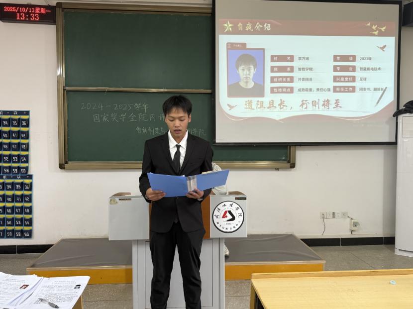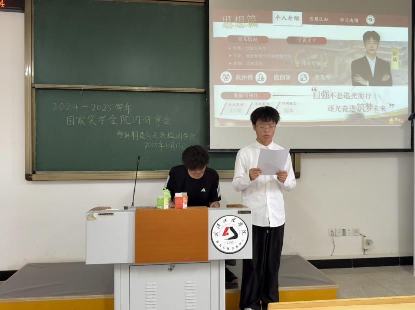 在评审环节,本科申报学子依次上台展示。他们不仅学业成绩名列前茅,更在科研创新领域表现突出。有的同学已在期刊上发表学术论文,有的则在“挑战杯”等高水平学科竞赛中斩获佳绩,还有的带领团队荣获了多项国家级奖项。大家条理清晰地阐述着自己的研究思路与成果,展现出扎实的专业理论功底和锐意进取的探索精神,其出色的表现赢得了评委们的频频点头与赞许。