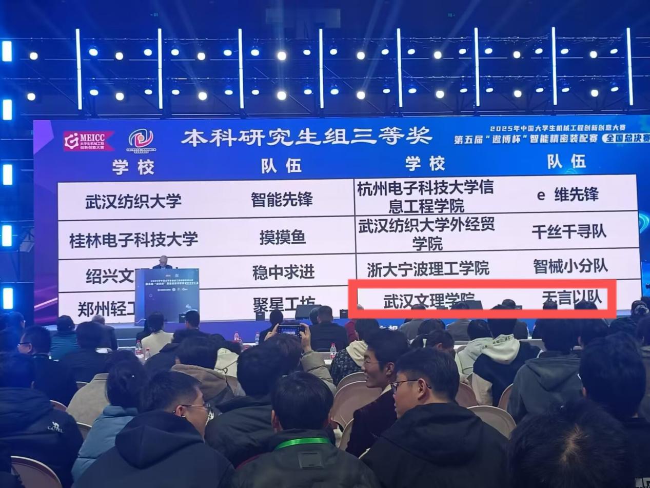11月21日至22日,2025年中国大学生机械工程创新创意大赛第五届“遨博杯”智能精密装配赛全国总决赛在杭州圆满落幕。作为国内机械工程领域极具影响力的A类赛事,本届大赛吸引了全国众多高校的精英团队同台竞技。永利集团304两支参赛队伍在李潇、顾慧琳老师的悉心指导下,凭借扎实的专业功底、创新的技术方案和稳定出色的现场表现,从全国近百所高校的二百余支队伍中脱颖而出,一举斩获一等奖1项、三等奖1项,其中一等奖实现了学校在该赛事中的历史性突破,充分彰显了我校在智能制造与精密装配领域的学科优势及人才培养成效。