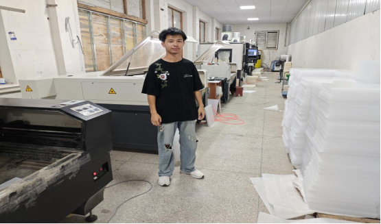 七月流火,任浪怀揣着对实践的期待与好奇,进入彼力孚塑胶科技(上海)有限公司。这里是智能制造的小战场,0.5mm透明塑料板的精密加工,考验着技术与耐心。主要负责操作视觉打孔机的他,迅速进入角色,将课堂所学理论,对接车间实操需求。每一次精准打孔,都是对“精益求精”的践行,青春的专注,在机器运作的嗡鸣中闪光。