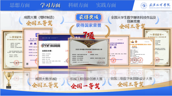 2025年,石文博与队友携“数字孪生赛道”作品,从全国多支精英团队中脱颖而出,最终以全国第六名的成绩荣获中国大学生机械工程创新创意大赛全国一等奖,实现我校在该赛事中“零”的突破;他主导的“智农先锋”项目,先后荣获全国三维数字化创新设计大赛三等奖、全国大学生数字媒体科技作品及创意竞赛三等奖;在成图大赛增材制造赛道上,他带领团队研发的“螺丝分拣机”首次为我校赢得全国三等奖,打破了多年来“零奖项”的局面。
